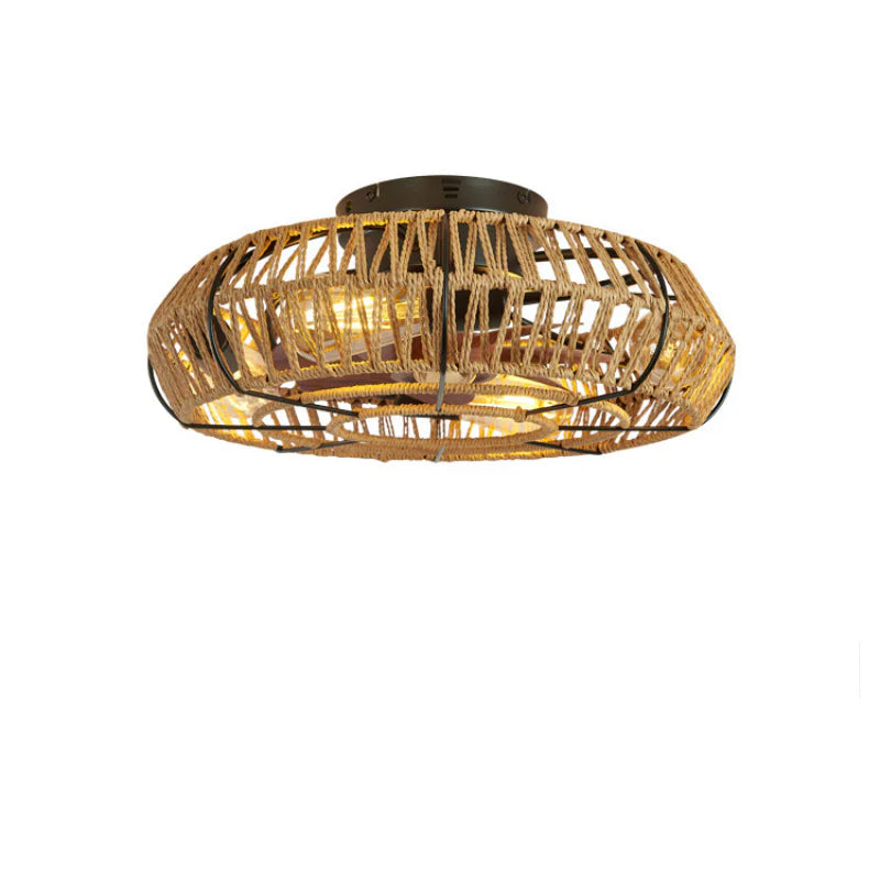 Breng een vleugje rustieke charme in je interieur met de Bohemia  plafondventilator met geïntegreerde LED. De unieke combinatie van gevlochten touw, metaal en moderne afwerking maakt dit armatuur zowel decoratief als functioneel – perfect voor woonkamers, slaapkamers of stijlvolle hotelkamers.