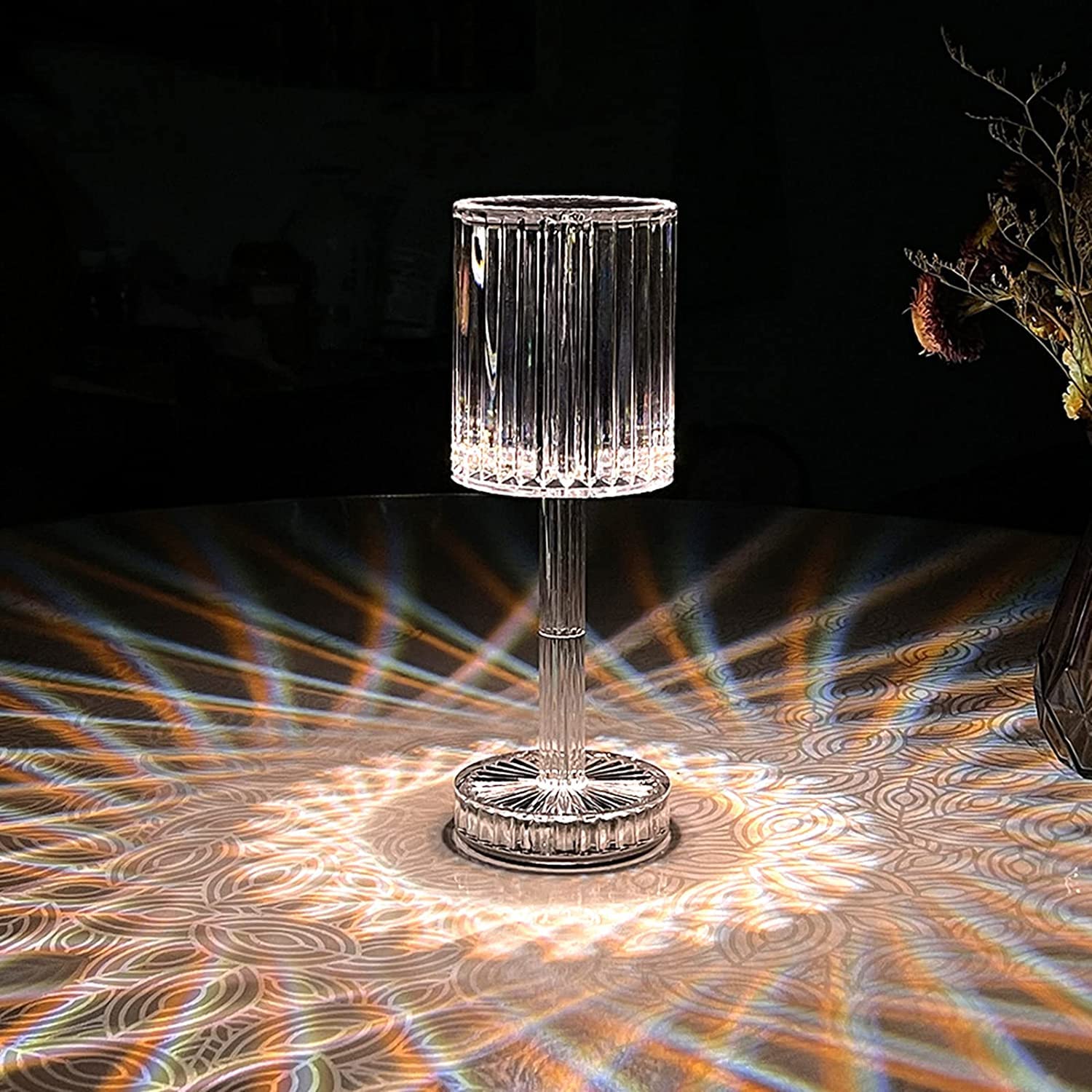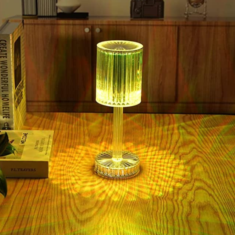 Voeg luxe en sfeer toe aan je interieur met de Kristallen luxe Diamant Touch Tafellamp. Dankzij het elegante diamantgeslepen ontwerp en de heldere RGB-lichtkleuren brengt deze lamp een magische gloed in elke ruimte. Het 360° acrylglas zorgt voor schitterende lichtreflecties die een warme, moderne en stijlvolle uitstraling creëren.