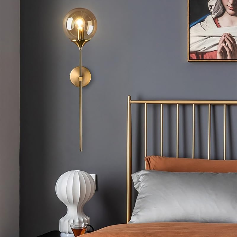Geef jouw interieur een verfijnde uitstraling met deze Luxe Wandlamp met Gouden Frame en Glazen Bol. Het stijlvolle ontwerp met gerookt glas en een gouden metalen frame zorgt voor een warme en uitnodigende sfeer. De zachte, diffuus verspreide verlichting is ideaal voor woonkamers, slaapkamers of gangen.