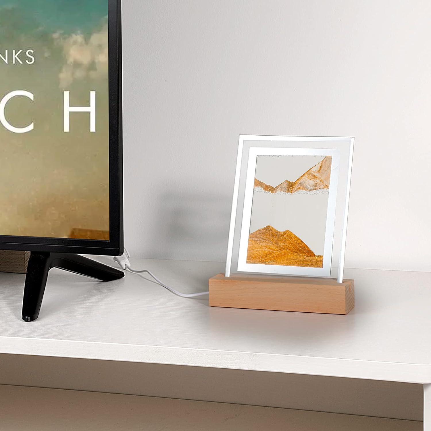 Breng rust, creativiteit en betovering in huis met de drijfzand tafellamp. Terwijl het zand langzaam door het frame stroomt, ontstaat steeds een nieuw kunstwerk dat je blijft fascineren. Het warme LED-licht versterkt de sfeer en maakt deze lamp tot een echte eyecatcher in iedere ruimte.