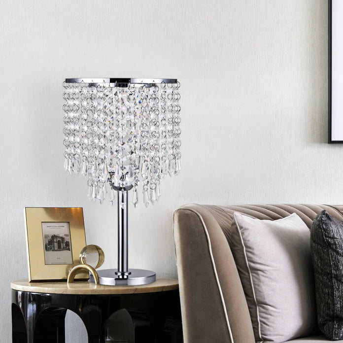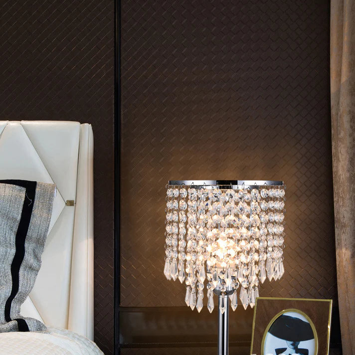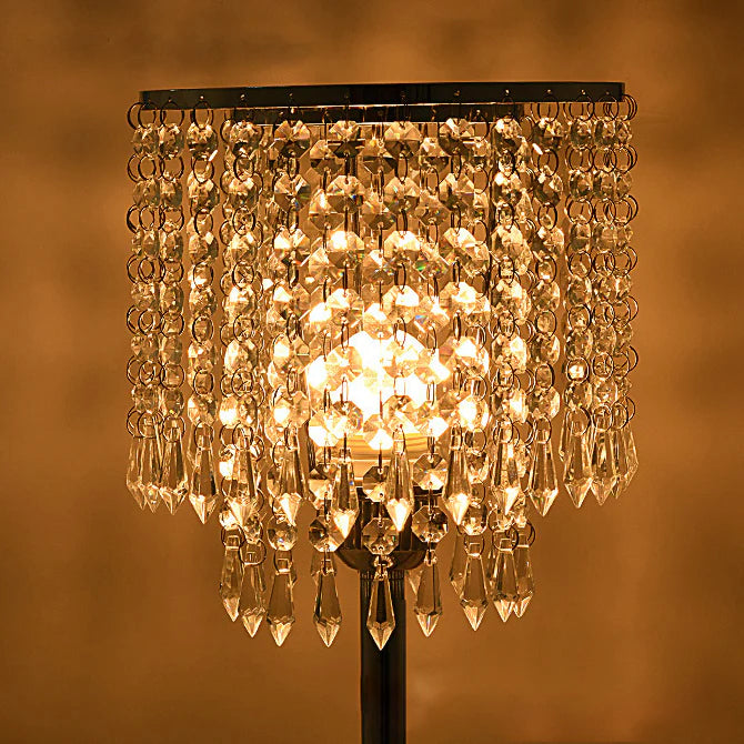 Voeg een verfijnde touch toe aan je interieur met de CrystaLuna tafellamp – een moderne blikvanger die elegantie en eenvoud samenbrengt. Met een kristallen kap en een slank ijzeren frame verspreidt deze lamp een subtiele schittering die elke ruimte tot leven brengt