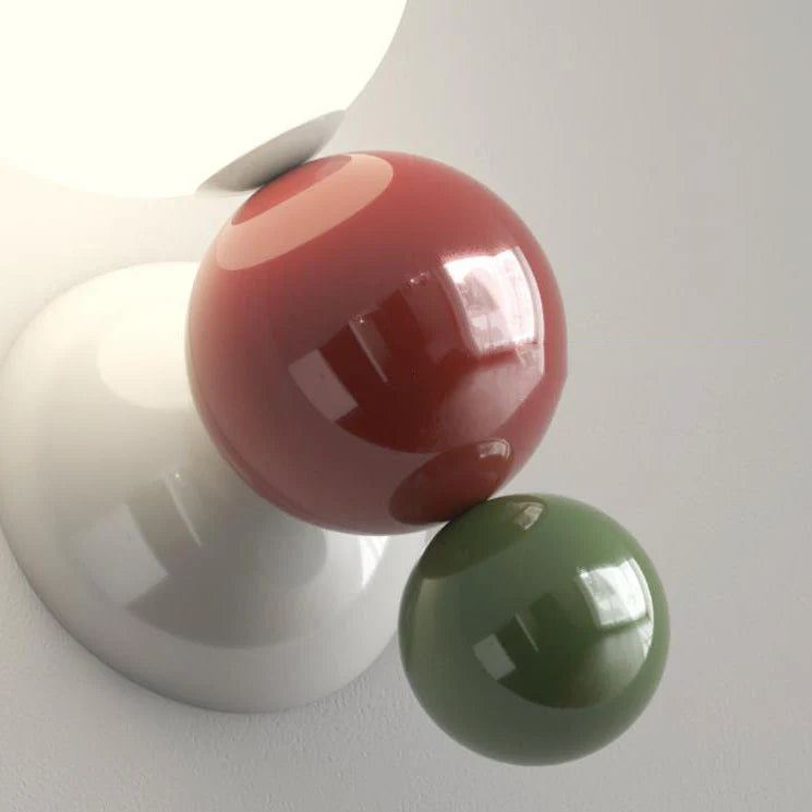 Breng warmte en stijl in de kinderkamer met deze moderne bolvormige wandlamp. Het strakke design in frisse kleuren zoals wit, rood en groen maakt deze lamp zowel speels als elegant. Dankzij de stevige constructie van ijzer en kunststof is de lamp duurzaam en veilig in gebruik.