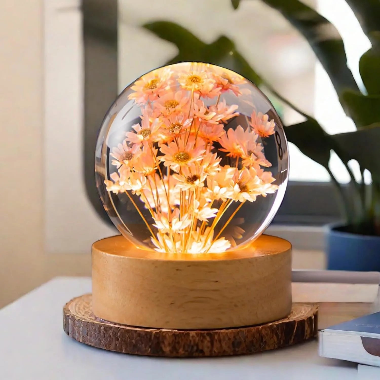 Breng een vleugje elegantie en warmte in elk interieur met deze Kristalbloemen LED Tafellamp. Het verfijnde ontwerp, waarin een fragiele paardenbloem in kristal gevangen zit, verspreidt zacht LED-licht dat een rustgevende en stijlvolle sfeer creëert. Perfect om comfort en stijl toe te voegen aan je woonkamer, slaapkamer of werkplek.