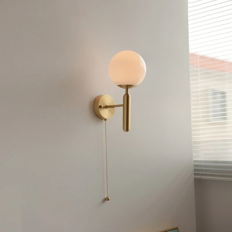 Moderne Wandlamp met Trekschakelaar & Matglazen Kap