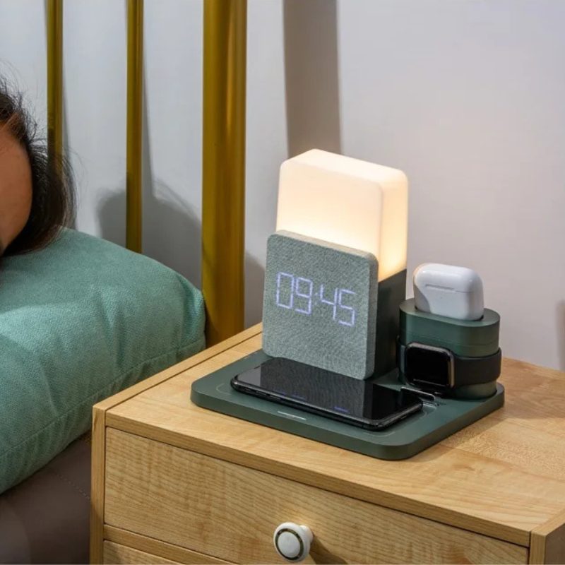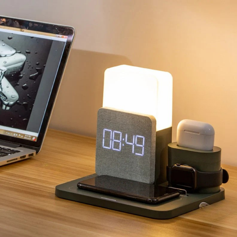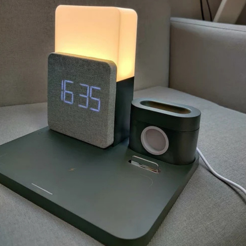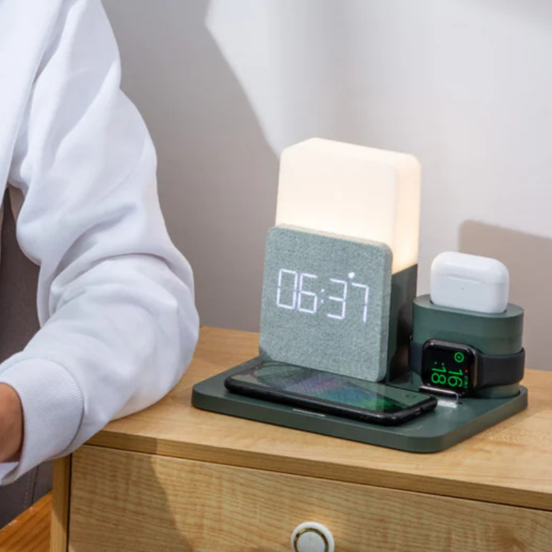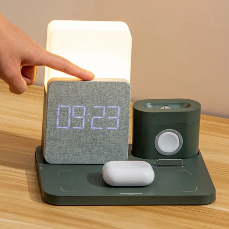 De Wekker Draadloze Oplader Tafellamp is meer dan alleen een wekker. Dit moderne nachtlampje combineert stijl, functionaliteit en comfort in één strak design. Dankzij de geïntegreerde draadloze oplader laad je eenvoudig je smartphone op, terwijl het zachte nachtlamplicht voor een rustgevende sfeer in je kamer zorgt.