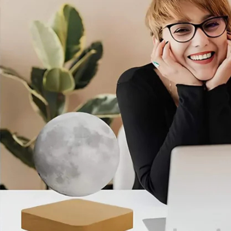 Laat je betoveren door de rustgevende magie van de Maanlamp. Deze prachtige maan zweeft moeiteloos boven haar basis dankzij geavanceerde magnetische technologie. Met haar zachte, warme LED-licht brengt ze sfeer in elke ruimte – perfect voor slaapkamers, woonkamers of als uniek decoratief accent.