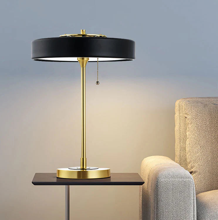 Voeg een speels en stijlvol accent toe aan je interieur met de tafellamp. Met zijn platte, ronde kap en slanke metalen frame brengt deze lamp een unieke mix van retro en futuristisch design. De kleurrijke afwerking trekt moeiteloos de aandacht en geeft elke ruimte – van hal tot woonkamer – een expressieve uitstraling.