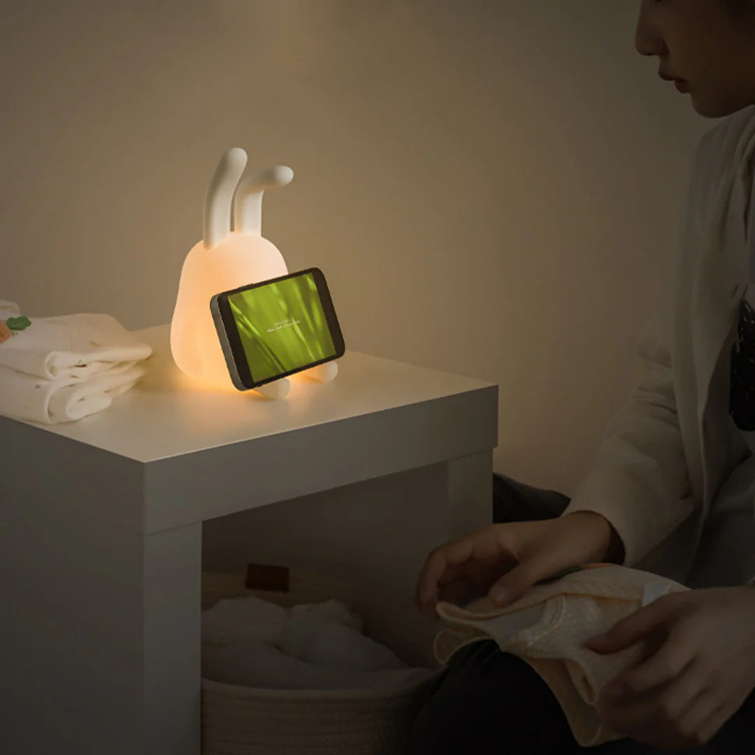 Breng warmte en speelsheid in elke kamer met dit charmante konijn nachtlampje. Het zachte, warme licht zorgt voor een gezellige sfeer en is ideaal voor kinderkamers of als sfeerlamp. Dankzij de flexibele oren kun je het lampje ophangen of zelfs gebruiken als telefoonhouder – praktisch en leuk tegelijk. Met USB-oplaadfunctie en draagbaar ontwerp is dit lampje perfect voor dagelijks gebruik.