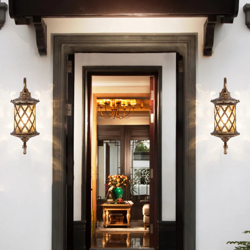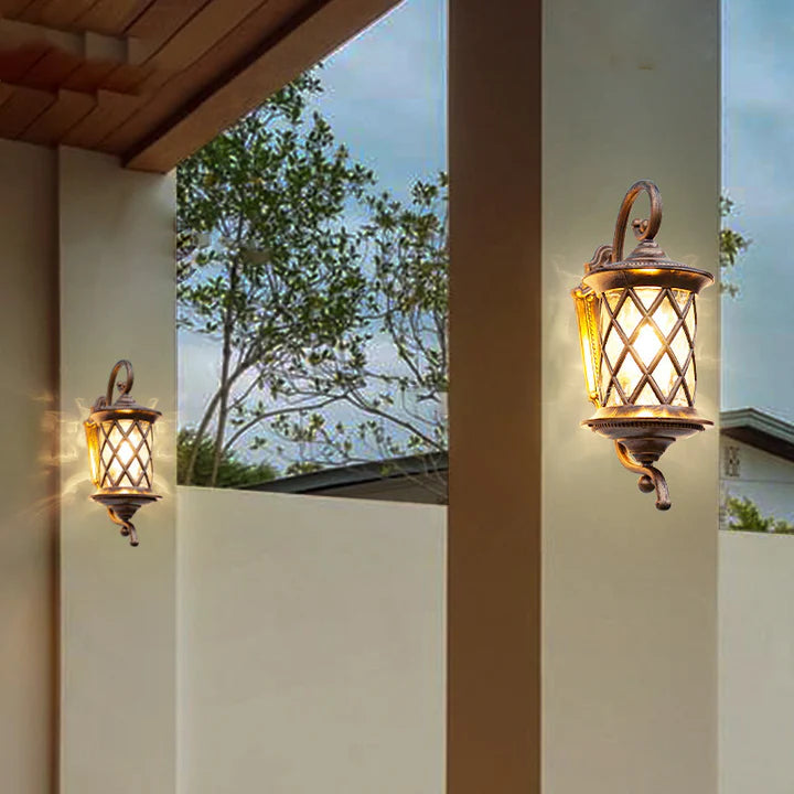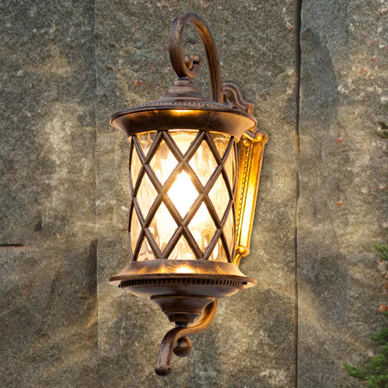 Traditionele Rustieke Gevellamp met Watergolf Glazen Kap
