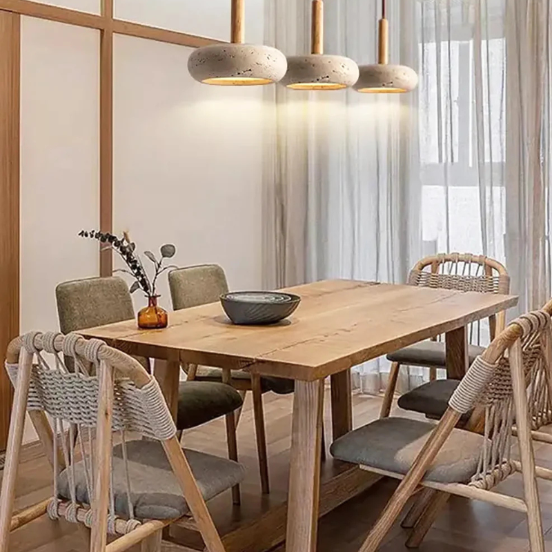 Breng rust en karakter in huis met de Zonnesteen Hanglamp.De combinatie van warm travertin en glad afgewerkt hout straalt natuurlijke elegantie uit. Het subtiel getextureerde oppervlak verzacht het licht tot een sfeervolle gloed, perfect voor woonkamer, eetkamer of hal. Een tijdloos design dat ambacht en natuur samenbrengt in één verfijnd statementstuk.